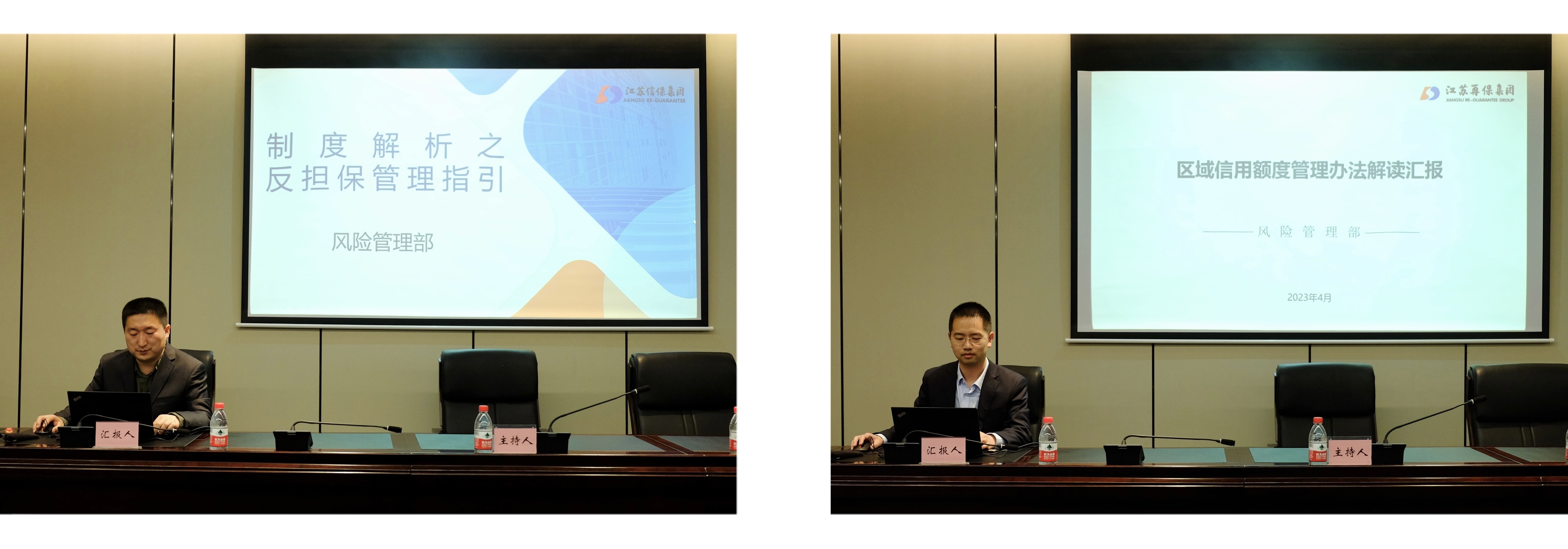 會上,風(fēng)險管理部有關(guān)同志詳細(xì)解讀了反擔(dān)保管理指引,從修訂依據(jù)、重要定義、重點條款等方面闡釋該制度,重點介紹反擔(dān)保資產(chǎn)覆蓋率的計算模型——“評級與規(guī)模質(zhì)量并重的分類管理”模型。介紹了區(qū)域信用額度管理辦法,從制度起草背景與目的、主要特點、制度框架及要點、實施安排等方面進(jìn)行解釋說明。