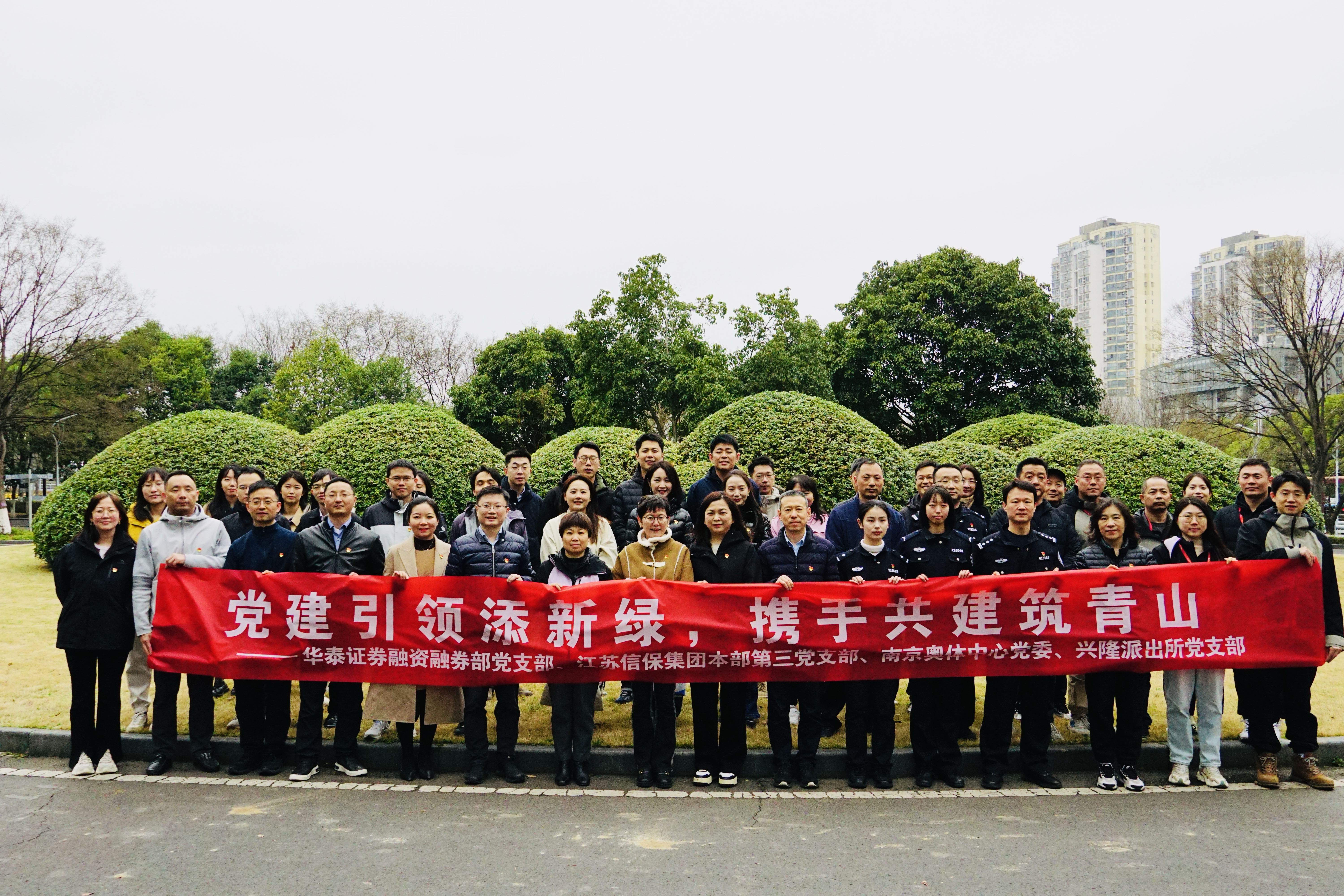 3月13日,集團本部第三黨支部聯合華泰證券融資融券部黨支部、南京奧體中心黨支部、興隆派出所黨支部舉辦“黨建引領添新綠,攜手共建筑青山”主題黨建共建活動。來自四個黨支部的50余名黨員,通過綠色公益志愿服務踐行社會主義核心價值觀。集團黨委委員、副總裁仇雪嶸、華泰證券融資融券部總經理莊之喬、南京奧體中心經營管理有限公司黨委副書記、紀委書記余宏霞、興隆派出所教導員陳文瀚參加活動。