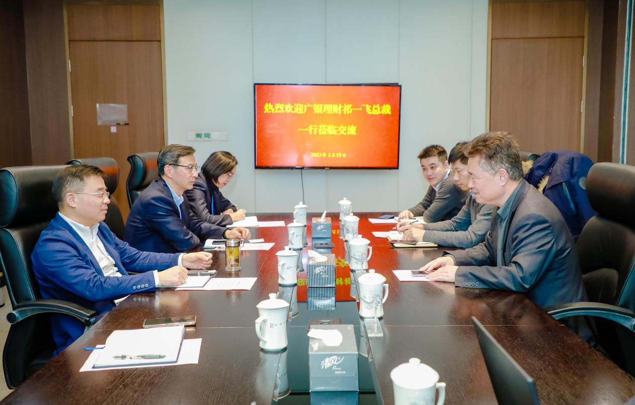 2月15日,集團黨委委員、副總裁翟軍會見廣銀理財祁一飛總裁、廣發銀行南京分行陳琦副行長。雙方就市場環境、政策變化、資源共享、業務方向、合作路徑等事宜進行了廣泛交流。