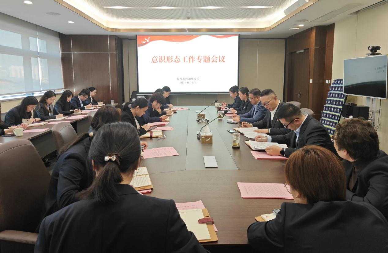 11月20日下午,常州高新擔保公司黨支部召開意識形態工作專題會議,傳達學習了習近平總書記關于意識形態工作的重要論述,進一步增強做好意識形態工作的政治自覺、思想自覺、行動自覺。