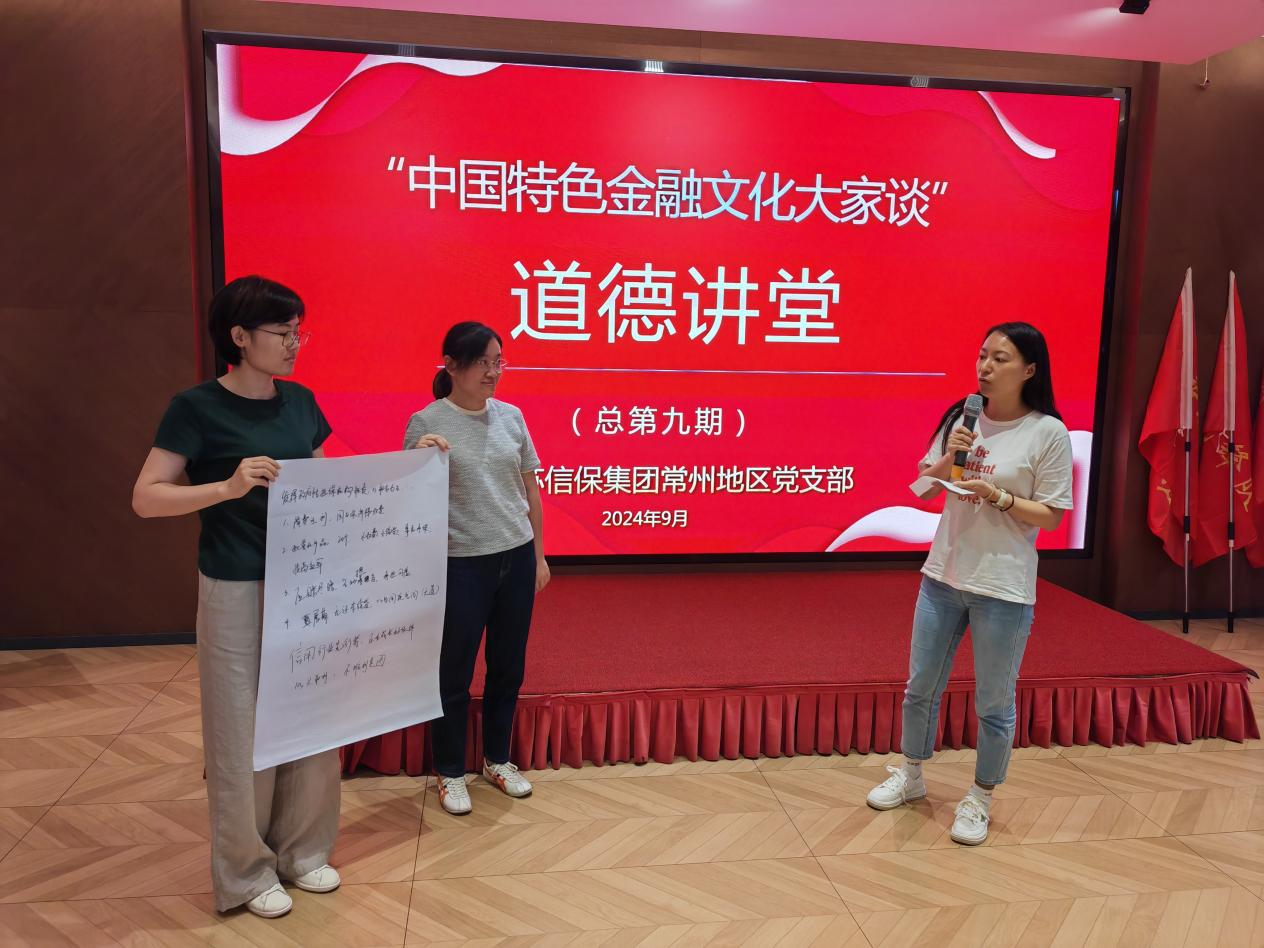 常州地區黨支部于近日開展了“中國特色金融文化大家談”道德講堂活動。在前期充分開展調查研究基礎上,本期活動緊扣學習貫徹黨的二十屆三中全會精神,聚焦主責主業,分五個組從不同主題交流研討,深化對中國特色金融文化五大核心要義的理解認識,推動形成有深度、有實效的實踐成果。