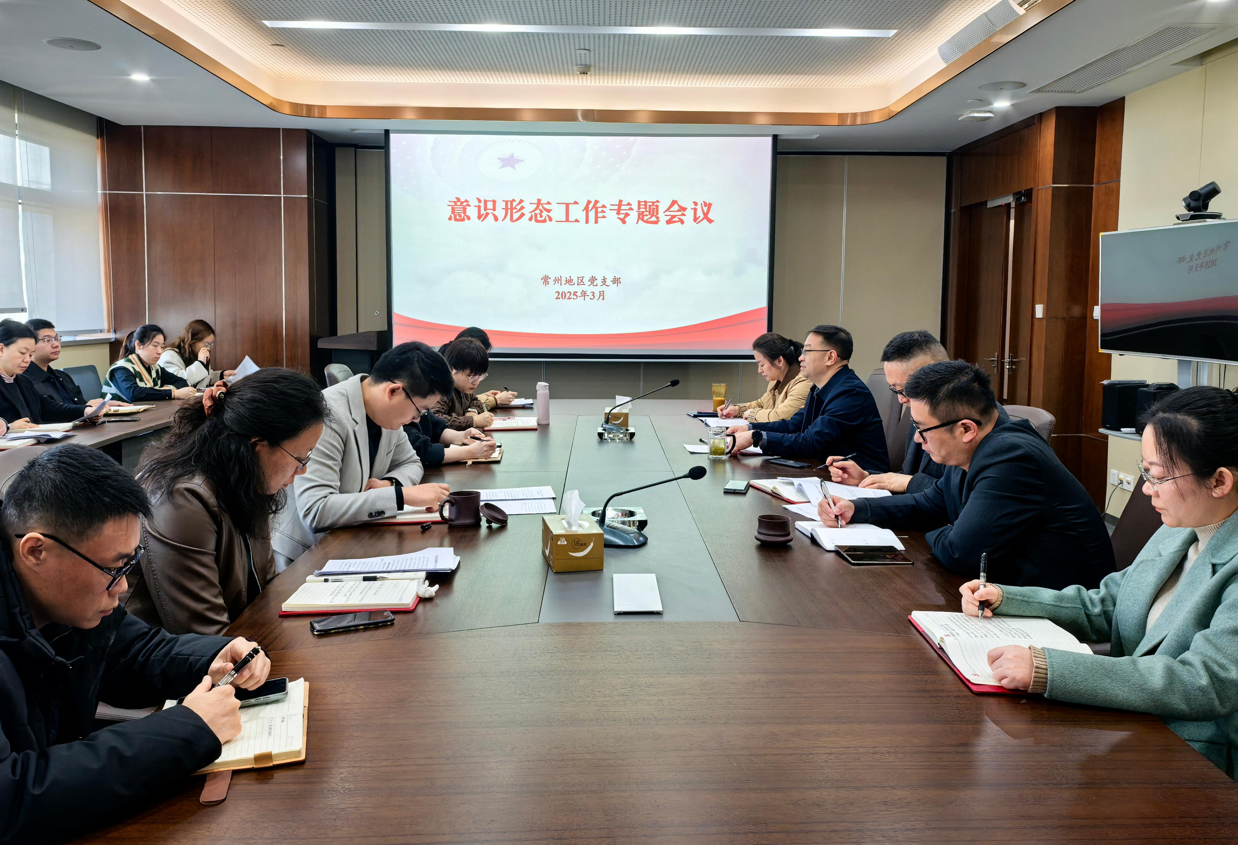 3月21日,常州地區黨支部組織常州一體化區域全體員工召開意識形態工作專題會議。
