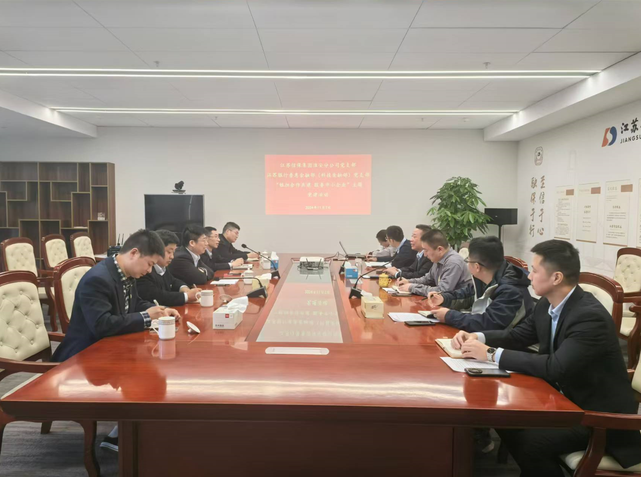 11月7日,淮安分公司黨支部與江蘇銀行淮安分行普惠金融部黨支部開展“銀擔(dān)合作共建,服務(wù)中小企業(yè)”主題黨建活動,并召開座談會,雙方全體黨員參加活動。