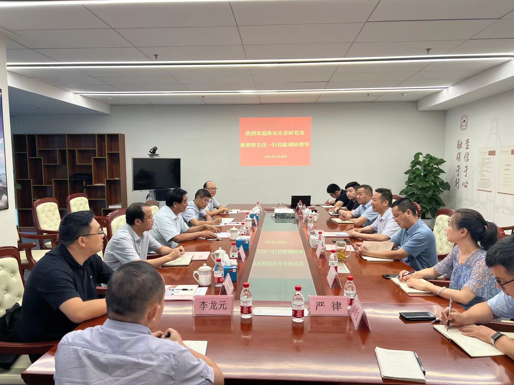 7月28日,淮安市委研究室主任謝善智一行到淮安分公司調研營商服務情況。淮安市委營商辦副主任張文兵,市委研究室財經處處長王志專、發展改革處處長吳克軍等參加調研。