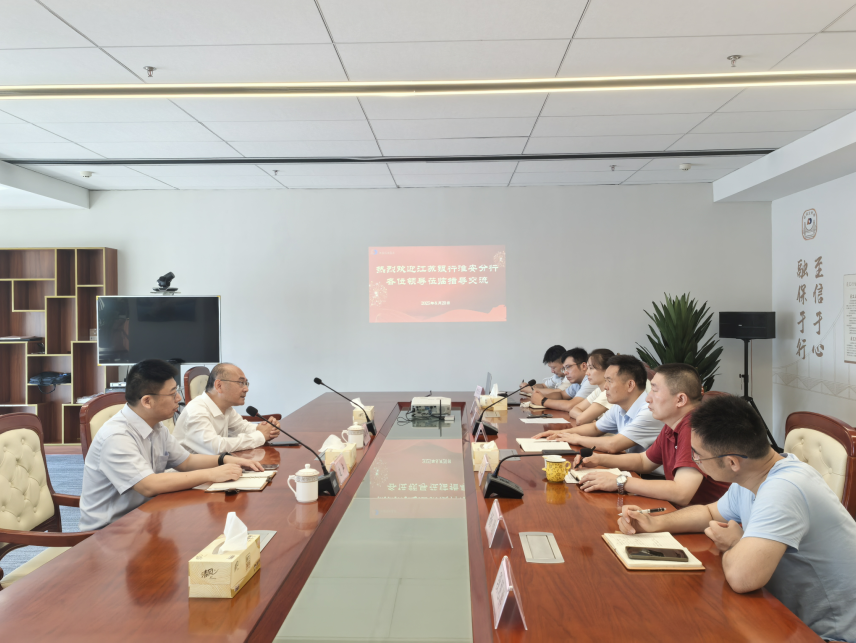 8月20日上午,江蘇銀行淮安分行副行長吳勁松、普惠金融部總經理邊江到淮安分公司開展業務交流。雙方圍繞當前合作成效、業務發展瓶頸及未來合作方向進行了深入交流,并達成多項共識。