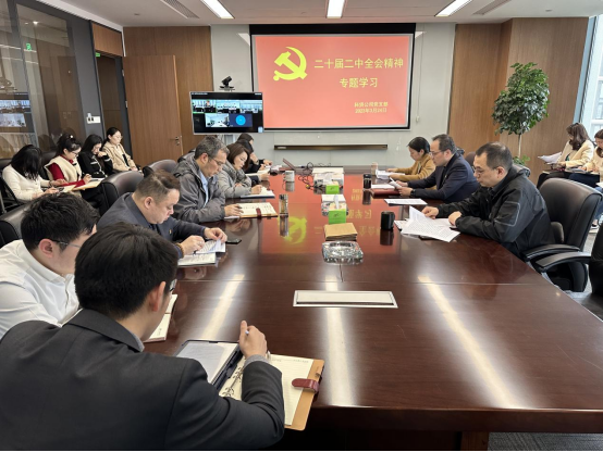 3月24日,江蘇信保科貸公司黨支部組織開展黨的二十屆二中全會精神專題學習,會議由黨支部書記主持,公司全體黨員群眾現場或者視頻參會。