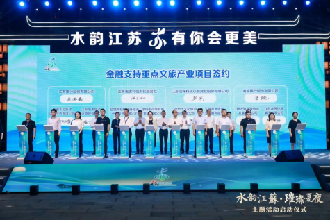 7月12日,由江蘇省文化和旅游廳、徐州市人民政府主辦的“水韻江蘇·璀璨夏夜”2024年全省重點文旅項目集中簽約活動在徐州舉行。江蘇省文化和旅游廳黨組書記、廳長楊志純,徐州市人民政府市長王劍鋒,新華日報社總編輯顧雷鳴,江蘇省發展和改革委員會二級巡視員陸建康,江蘇省商務廳二級巡視員卞益斌,中國人民銀行江蘇省分行黨委委員陳小梅,信保集團黨委委員、副總裁趙東坡以及省工行、省農行、省中行、省建行、省信用聯社、江蘇銀行、南京銀行等金融機構負責人出席簽約儀式,并見證銀企雙方代表現場簽約。