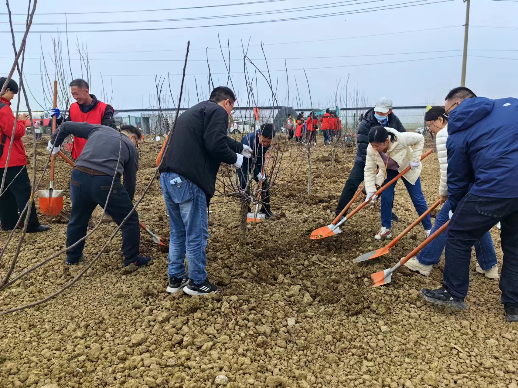 在植樹現場,大家默契配合、干勁十足,有人揮鍬挖坑,有人扶正樹苗,有人培土填埋,有人踩實澆水。種下一棵棵蘋果樹,掛上專屬寄語銘牌,讓心愿隨著果樹一起開花結果。在大家的共同努力下,一棵棵蘋果樹在春風里搖曳生姿,展現出向陽而生的蓬勃生機。
