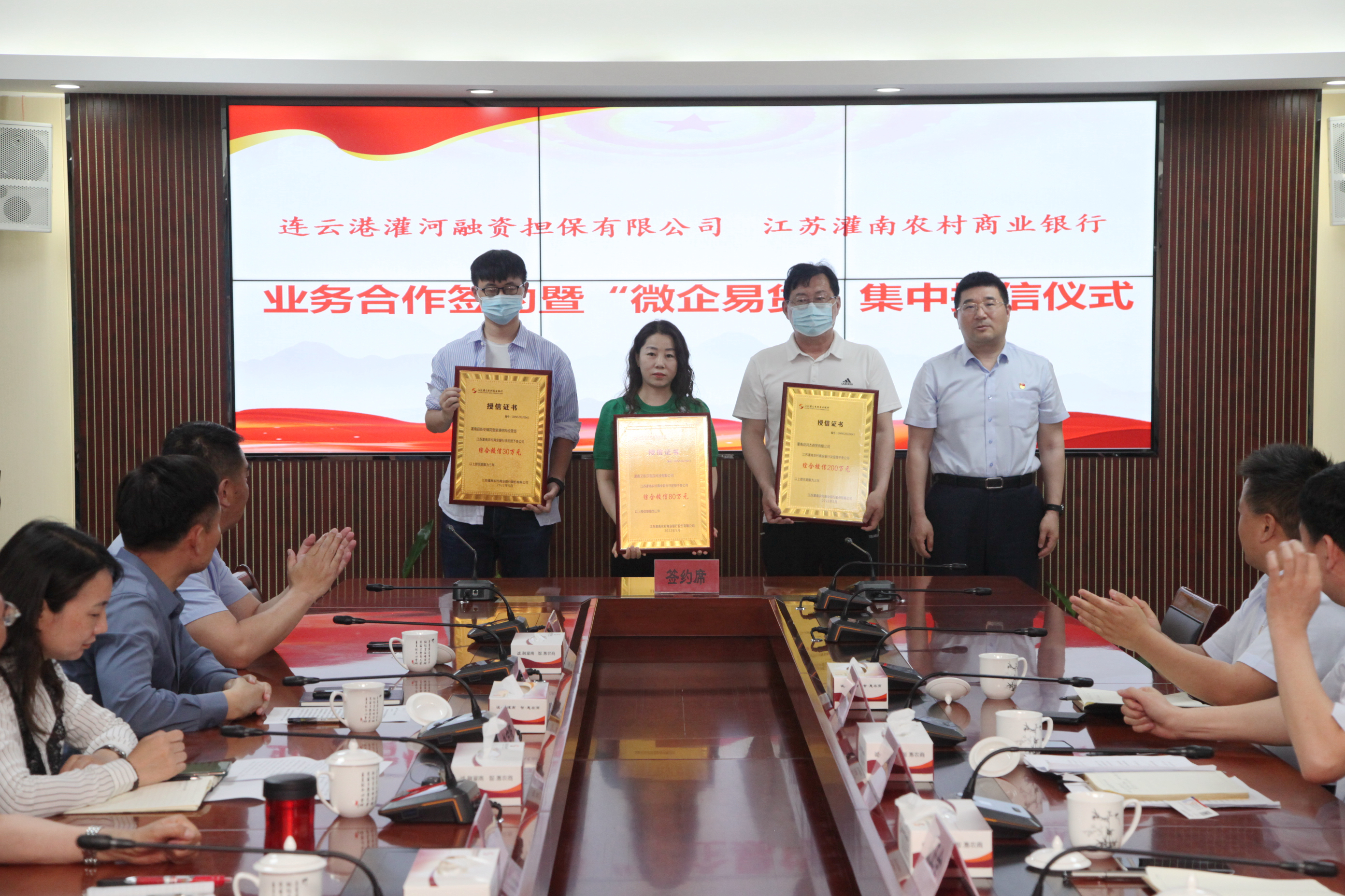 5月23日,灌南農村商業銀行與連云港灌河融資擔保有限公司成功舉辦業務合作簽約暨“微企易貸”集中授信儀式。簽約現場為灌南艾依莎洗滌科技有限公司成功發放貸款70萬元,這標志著“微企易貸”產品在連云港市成功落地。連云港分公司總經理助理張銀超見證了本次簽約儀式,表示本次簽約儀式是貫徹落實江蘇信保集團和省聯社戰略合作協議的具體實踐,是促進合作各方勇于擔當、融合發展、實現共贏的重要舉措,衷心希望以此次簽約為契機,戮力同心,高效務實,篤行不怠,共同為灌南地區廣大小微企業、“三農”等市場主體賦能,為灌南當地經濟社會穩定發展和鄉村振興建設譜寫新篇章。