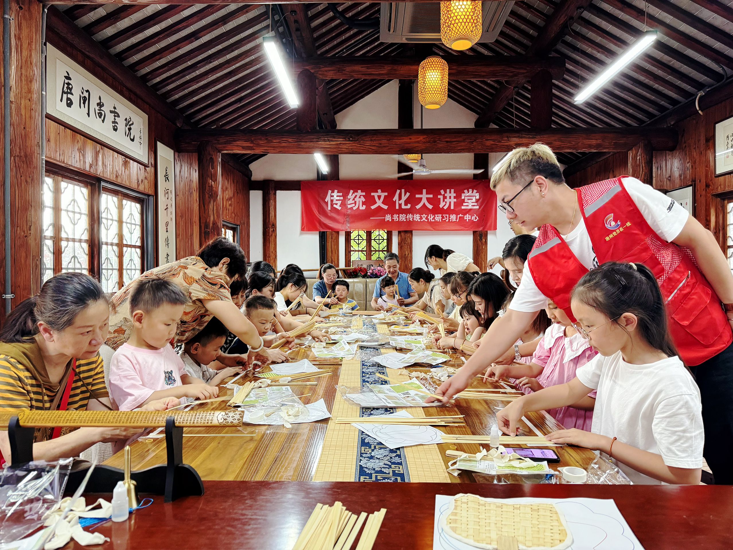 此次活動邀請唐閘尚書苑陳老師給學生們授課。講解中,陳老師將竹編與二十四節氣和國學閱讀有機融合,讓同學們更深入了解竹編的歷史和傳統文化,激發起小朋友對自然生活的熱愛和傳承非物質文化遺產的自覺。隨后,在志愿者和老師的指導下,小朋友們順利完成竹編扇制作。“天地玄黃、宇宙洪荒……”活動最后,小朋友們以《千字文》收官整場活動。