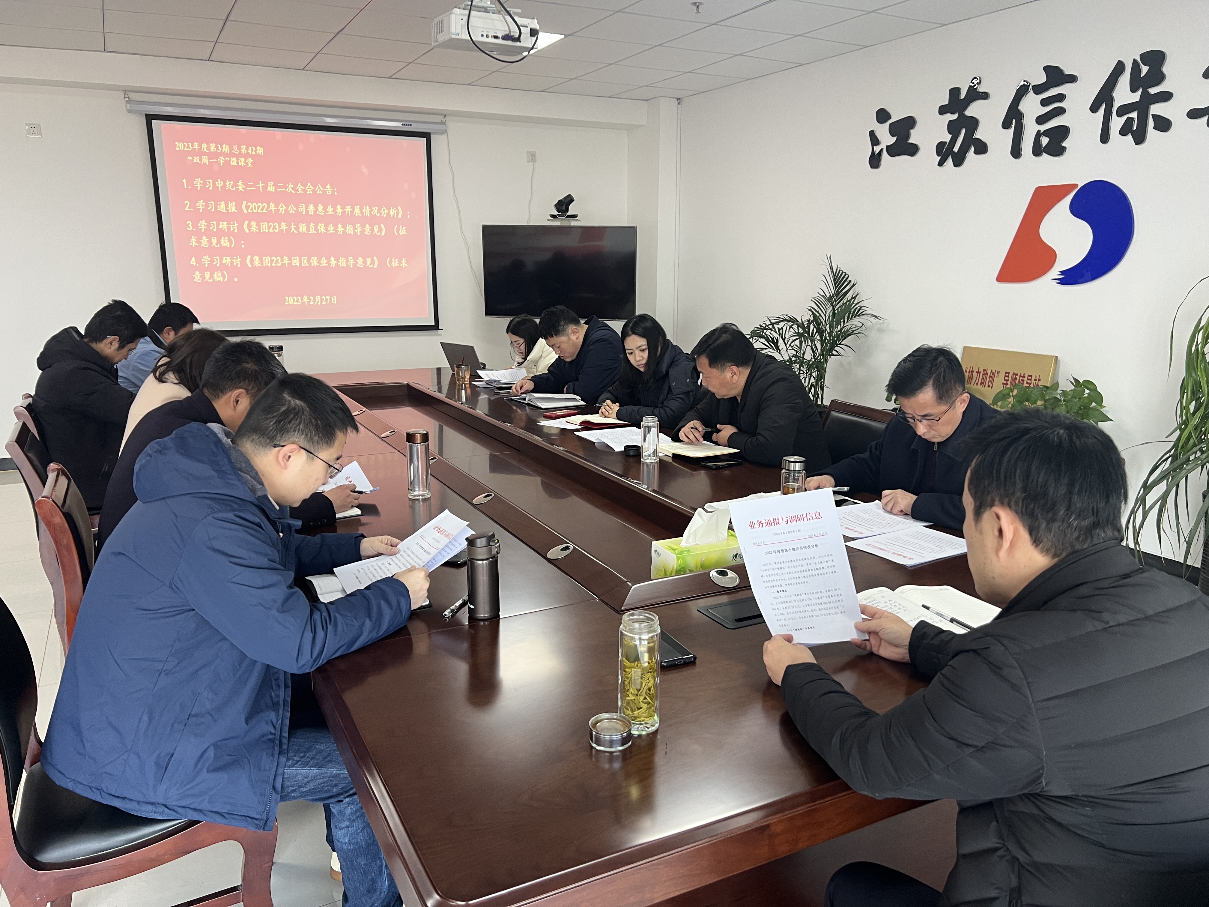 分公司總經衛帶領全體人員集中學習中國共產黨第二十屆中央紀律檢查委員會第二次全體會議公報,要求大家抓好思想建設,持續深化落實中央八項規定精神,弘揚偉大建黨精神,提供工作的主動性和積極性,全面增強自身內生動力和干事創業勁頭。會議還通報了《2022年度宿遷分公司普惠小微業務開展情況分析》,集團學習了集團《2023年大額直保業務指導意見》《2023年園區保業務指導意見》,參會人員對分公司普惠小微、大額直保、園區保的發展進行了深入分析和討論,統一了思想、凝聚了共識。