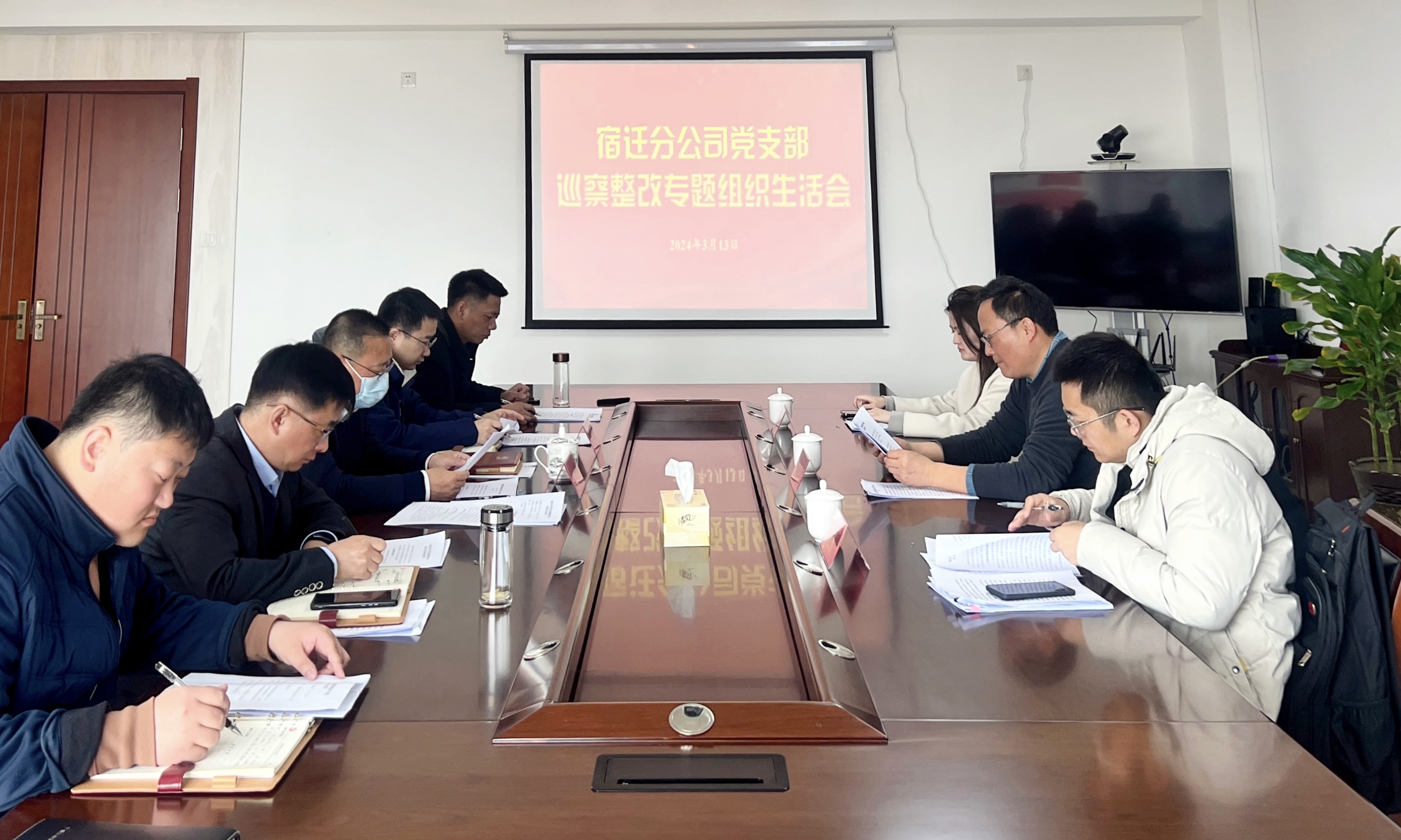 分公司黨支部高度重視此次組織生活會,會前,召開了專題研討會制定會議方案,認真組織黨員干部學習《關于巡察宿遷分公司黨支部及宿遷分公司的反饋意見》,廣泛征求意見建議,主動開展談心談話,深刻查擺問題。分公司全體黨員干部對照巡察反饋問題,結合自身思想和工作實際,認真撰寫查擺材料,統一了思想,提高了認識,為開好組織生活會打牢了思想基礎。