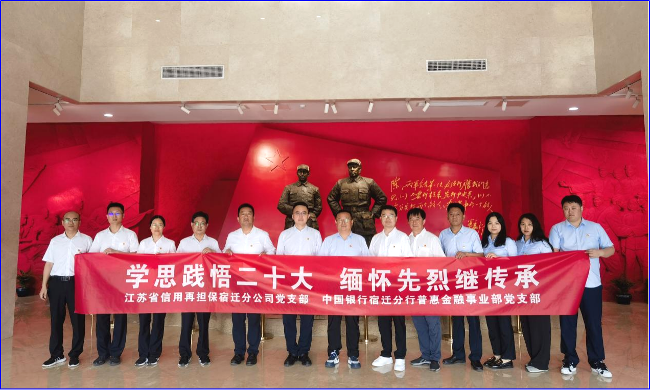 為強化黨建業務互融互促,推動黨建引領業務創新發展,6月25日,宿遷分公司黨支部與中國銀行宿遷分行普惠金融事業部黨支部共同赴宿北大戰紀念館開展迎“七一”黨建共建活動。分公司黨支部負責人,宿遷分行副行長,以及雙方支部黨員參加活動。