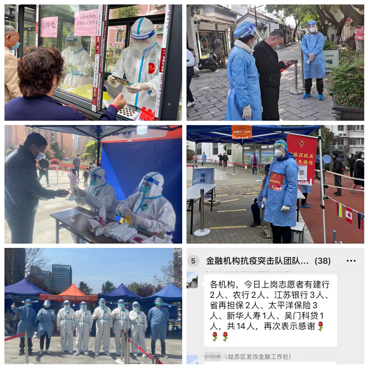 “由于疫情防控工作需要,明日姑蘇區全員核酸,急需14名志愿者,請能安排參加志愿者服務的單位速與我聯系……”蘇州本輪疫情發生以來,這樣的志愿者招募令,多次在姑蘇區金融機構抗疫突擊隊微信群里響起,蘇州分公司志愿者隊伍聞令而動,積極響應,踴躍報名參加,投身一線。