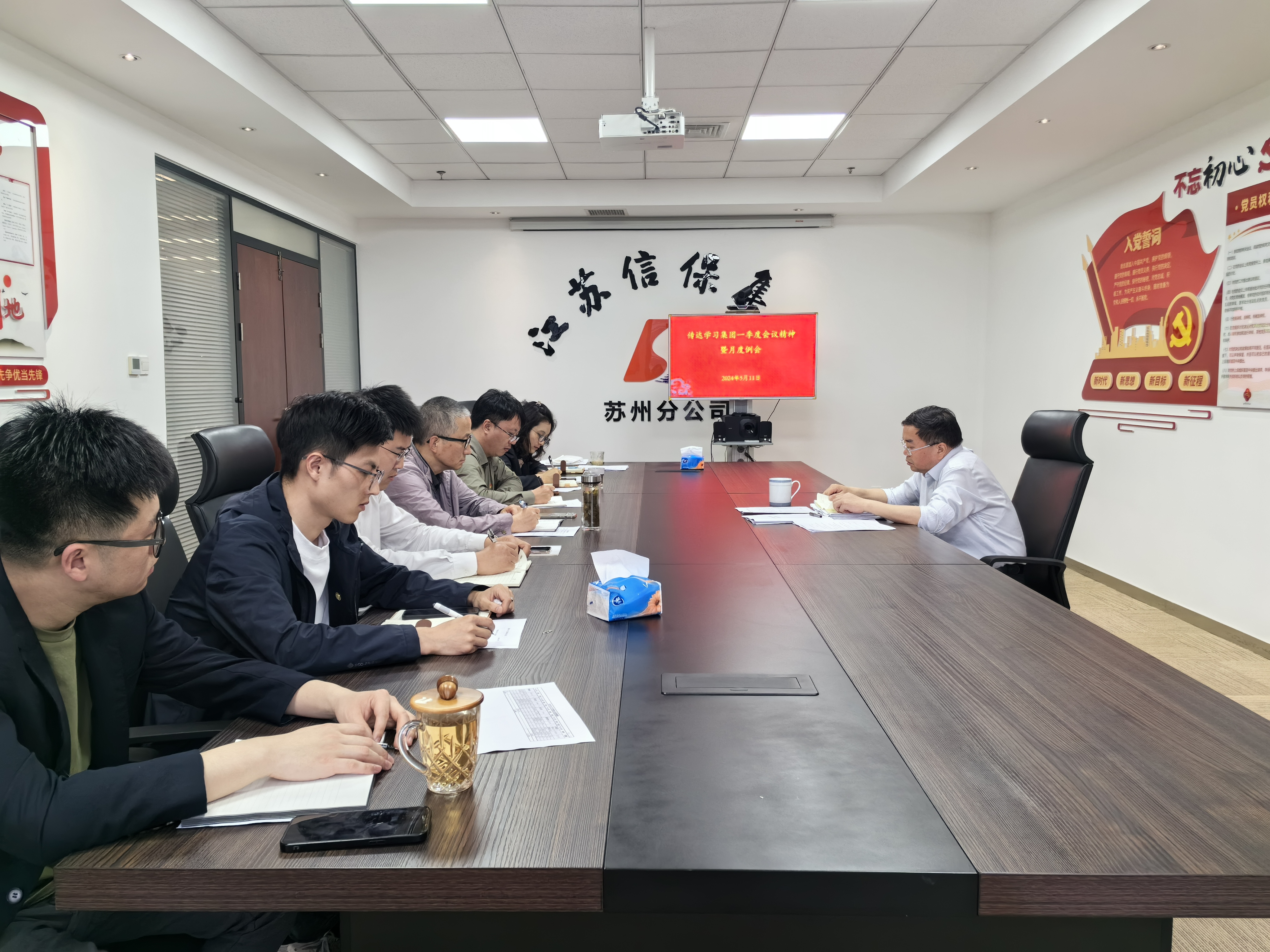 會上,蘇州分公司主要負責人帶領全體員工認真學習了集團黨委書記、董事長瞿為民和集團黨委副書記、總裁王松奇在集團一季度工作會議上的講話精神,全面梳理分公司今年以來的各項工作開展情況,深刻分析目前面臨的形勢,存在的問題,以及下一步工作舉措。