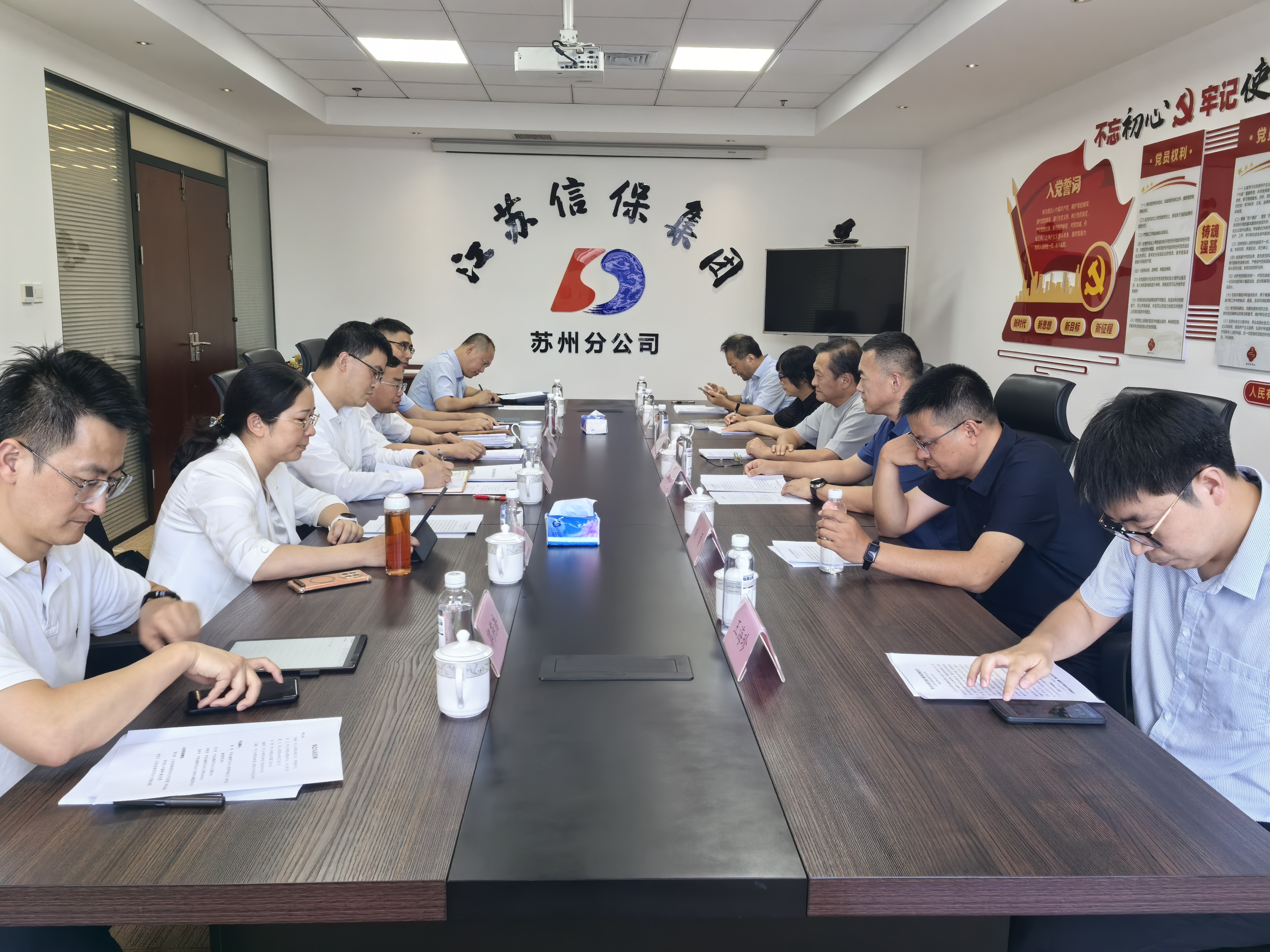 在調研座談會上,分公司主要負責人詳細介紹了集團整體經營情況,并重點匯報了近年來分公司堅守再擔保、擔保主責主業,服務蘇州經濟發展的重要創新舉措及實踐成效。
