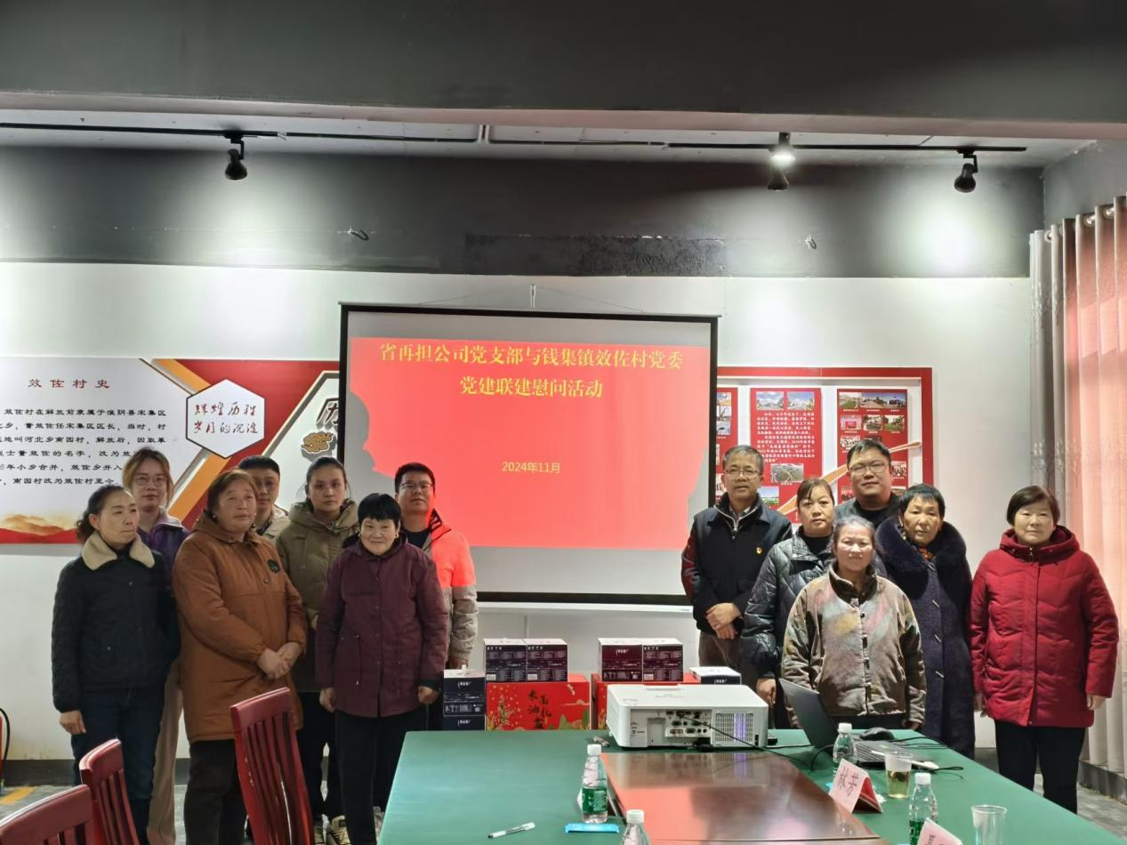 為進一步助力鄉(xiāng)村振興工作,弘揚社會主義核心價值觀,踐行國企的社會責任,11月27日,省再擔公司黨支部組織黨員代表赴沭陽縣錢集鎮(zhèn)效佐村開展黨建聯(lián)建活動,并為生活困難村民送去米面糧油等慰問品。