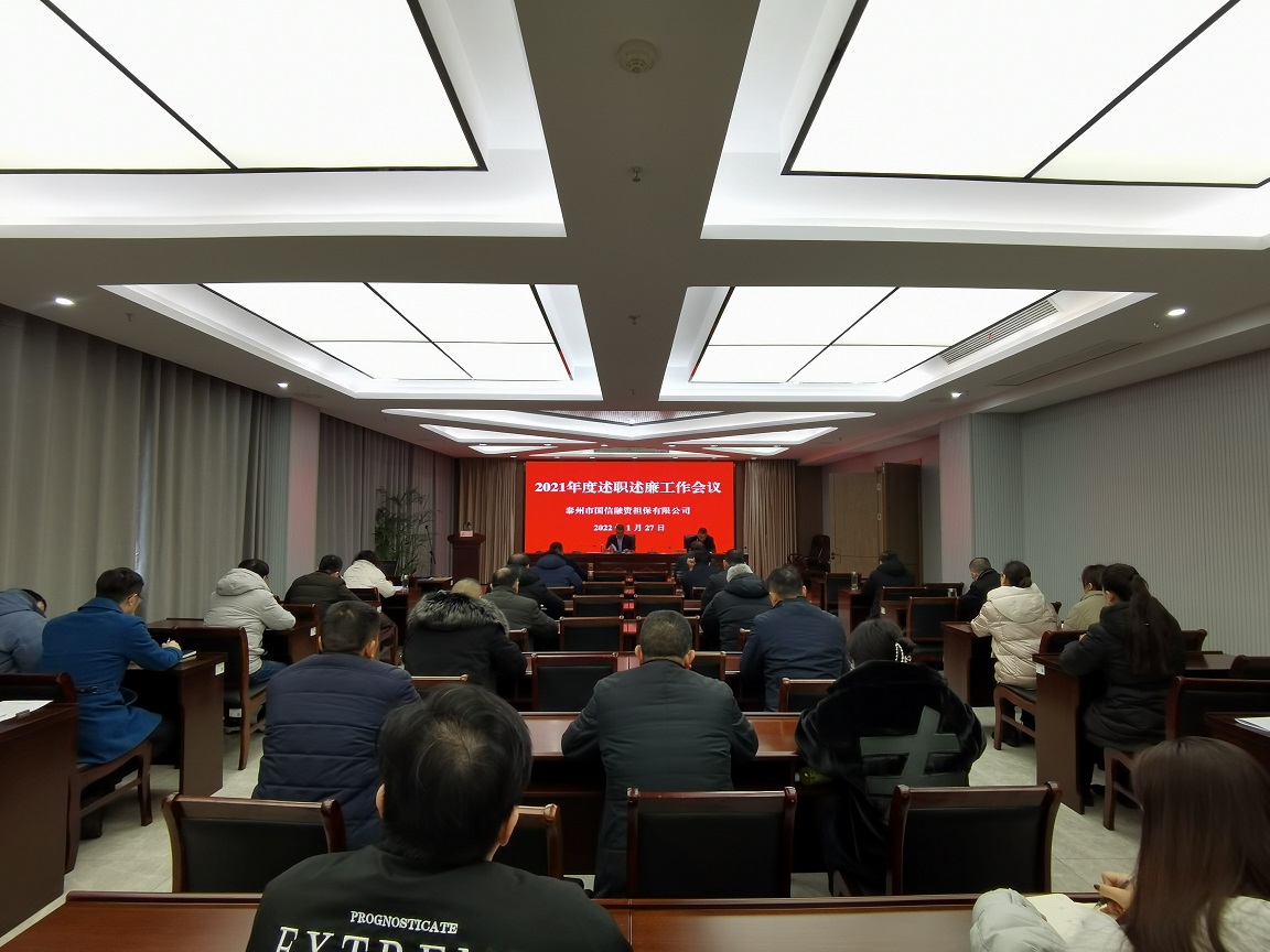 1月27日,泰州國信擔保召開2021年度公司中層以上干部述職述廉工作會議。董事長房健康,公司全體員工參加會議,總經理彭兵主持會議。