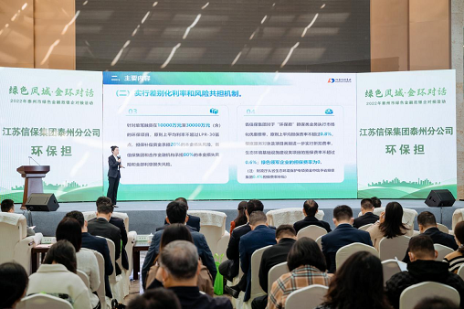 11月4日,泰州市地方金融監管局聯合市生態環境局、人行泰州中支、泰州銀保監分局,在市產融綜合服務中心舉辦“綠色鳳城·金環對話”2022年泰州市綠色金融政銀企對接活動。泰州市副市長周小慧出席并講話,市有關部門、部分金融機構負責人及近80家企業負責人參加活動,泰州分公司應邀參加會議并開展“環保擔”產品推介。