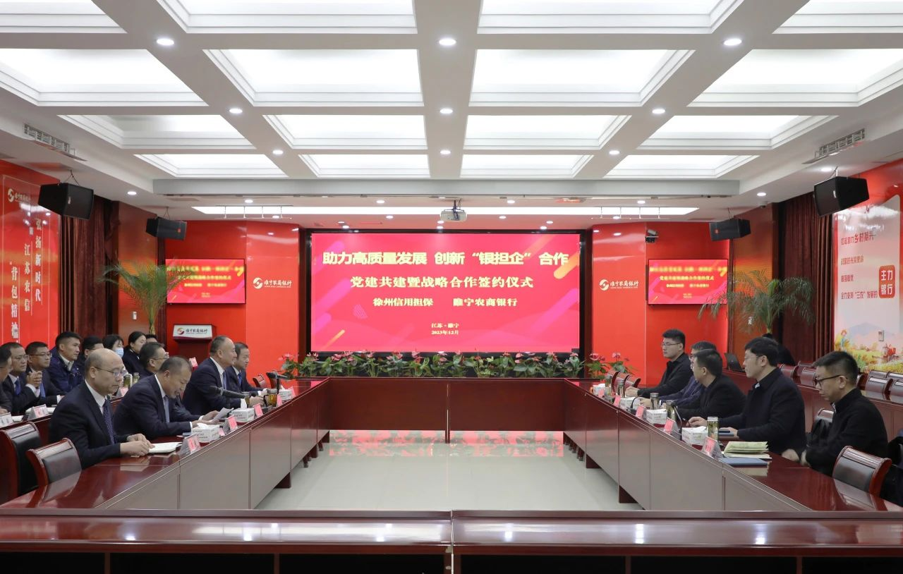 會(huì)上,徐州信用擔(dān)保公司與睢寧農(nóng)商銀行雙方簽署了黨建共建協(xié)議、戰(zhàn)略合作協(xié)議、“鄉(xiāng)村振興貸”產(chǎn)品協(xié)議,并由睢寧農(nóng)商銀行為三家“鄉(xiāng)村振興貸”服務(wù)企業(yè)代表頒發(fā)授信牌,徐州信用擔(dān)保公司分別與企業(yè)代表簽訂了擔(dān)保意向協(xié)議,王駿、姜斌共同見證。徐州一體化區(qū)域和睢寧農(nóng)商銀行負(fù)責(zé)人分別代表雙方致辭,并表示雙方將以此次黨建共建和戰(zhàn)略合作為契機(jī),貫徹落實(shí)中央金融工作會(huì)議精神和省委省政府決策部署,搭建合作橋梁、優(yōu)化金融生態(tài)、助力鄉(xiāng)村振興,圍繞加快農(nóng)業(yè)農(nóng)村現(xiàn)代化,創(chuàng)新高質(zhì)高效的金融支農(nóng)支小模式,在銀擔(dān)合作、賦能“三農(nóng)”、人才交流等方面實(shí)現(xiàn)新突破。