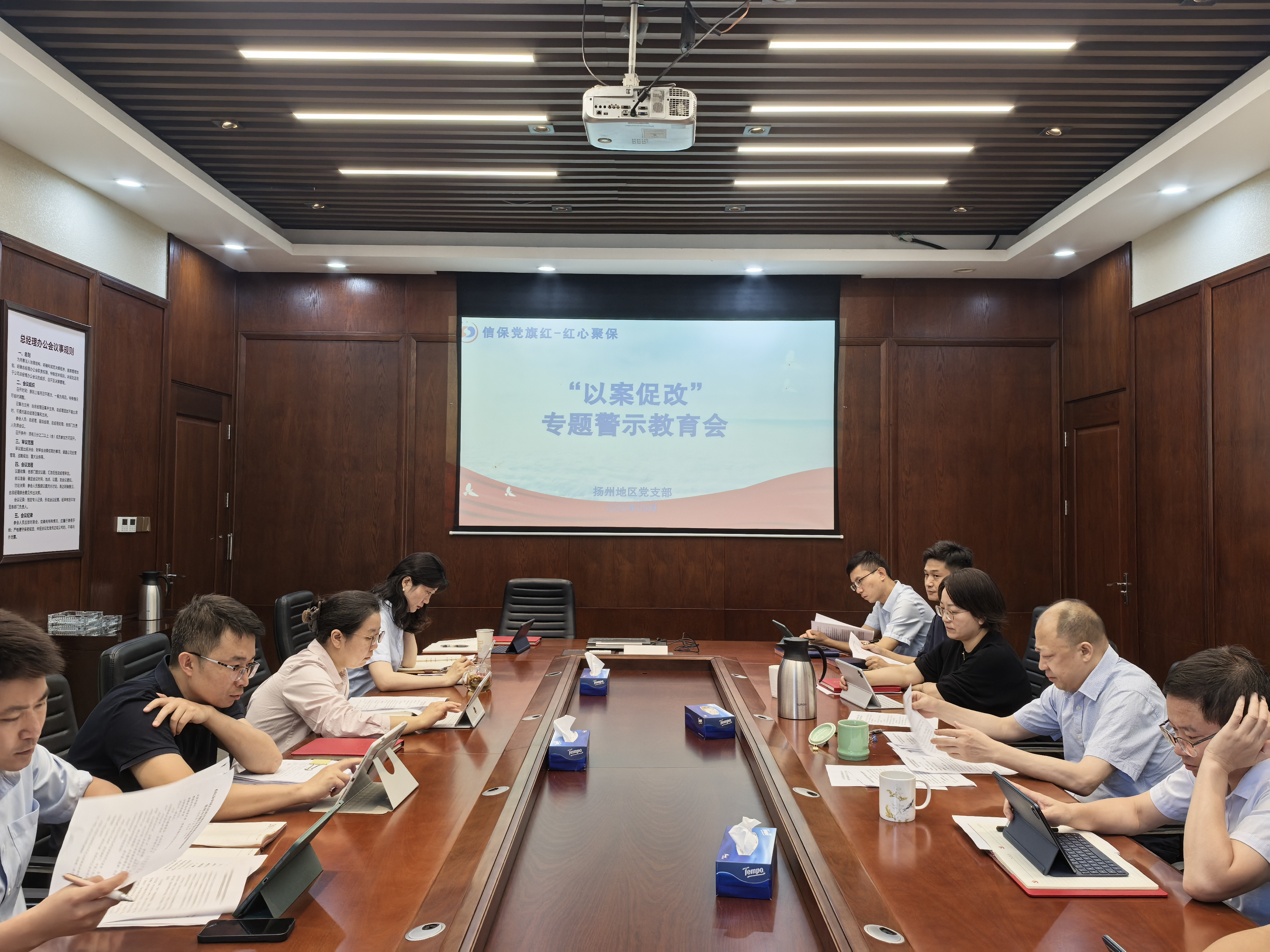 為深入貫徹落實全面從嚴治黨要求,切實筑牢黨員干部及員工的紀律防線與思想根基,充分發揮典型案例的警示教育作用,9 月16日,揚州地區黨支部召開“以案促改”專題警示教育會。會議由支部書記主持,揚州一體化區域全體干部員工參會,實現警示教育全覆蓋。