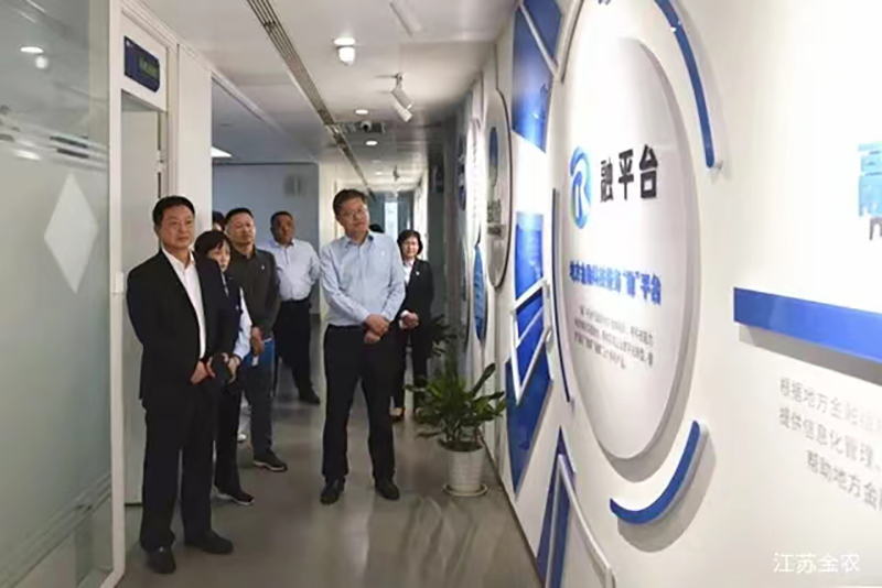 活動中,集團本部第一黨支部黨員代表參觀了由金農公司開發運維的江蘇小貸行業信息數據展示平臺以及金農公司黨建品牌、企業文化和發展戰略形象展示系統,并聽取相關介紹。