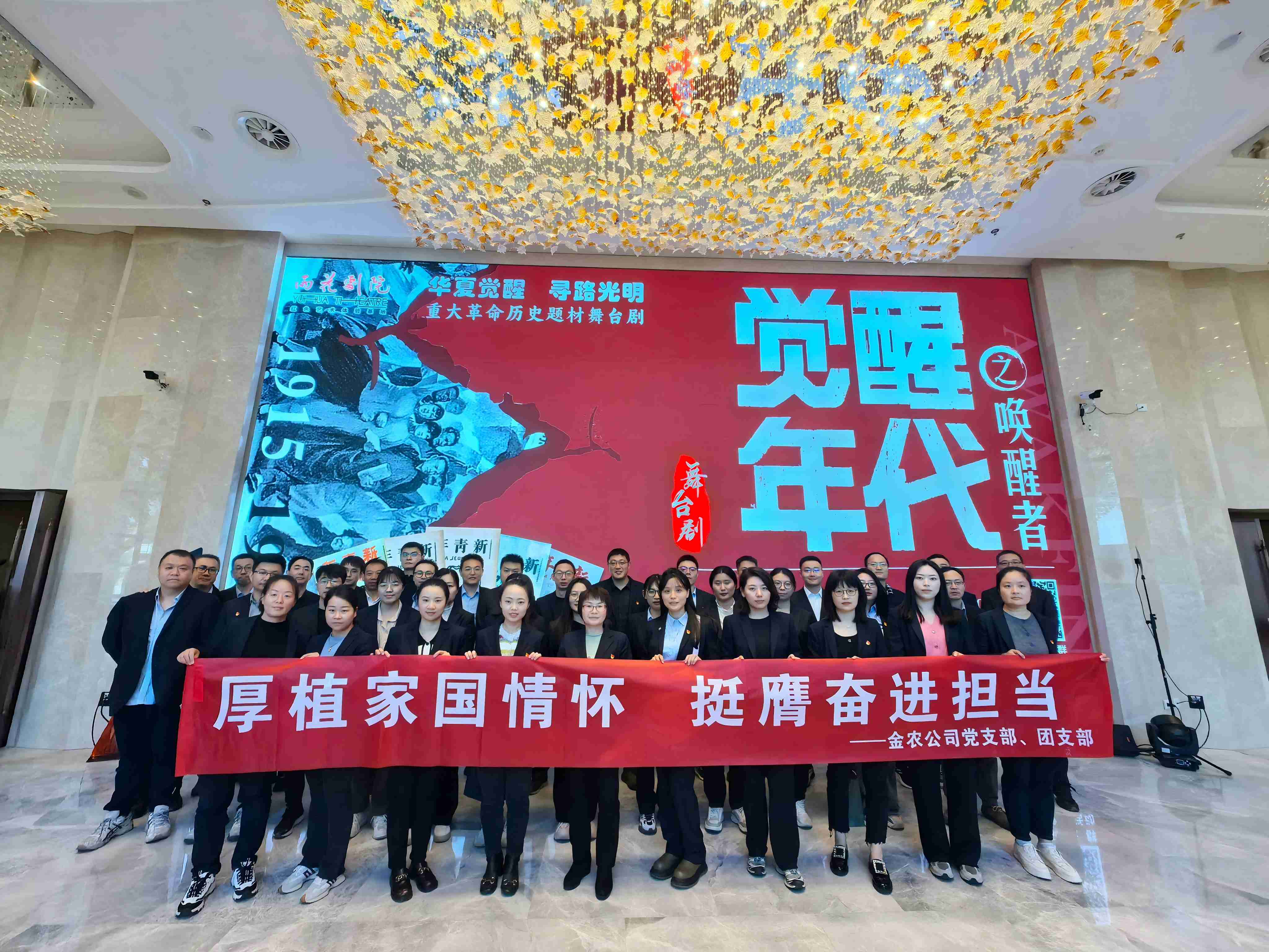 為深入學習貫徹習近平新時代中國特色社會主義思想,全面貫徹落實黨的二十大和二十屆三中全會精神,激發黨員和團員青年將愛黨愛國情懷植于心、踐于行,進一步弘揚社會主義核心價值觀,11月13日下午,金農公司黨支部、團支部開展“厚植家國情懷 挺膺奮進擔當”主題黨建帶團建活動,集中觀看重大革命歷史題材舞臺劇《覺醒年代之喚醒者》。公司黨員和團員青年共40余人參加活動。
