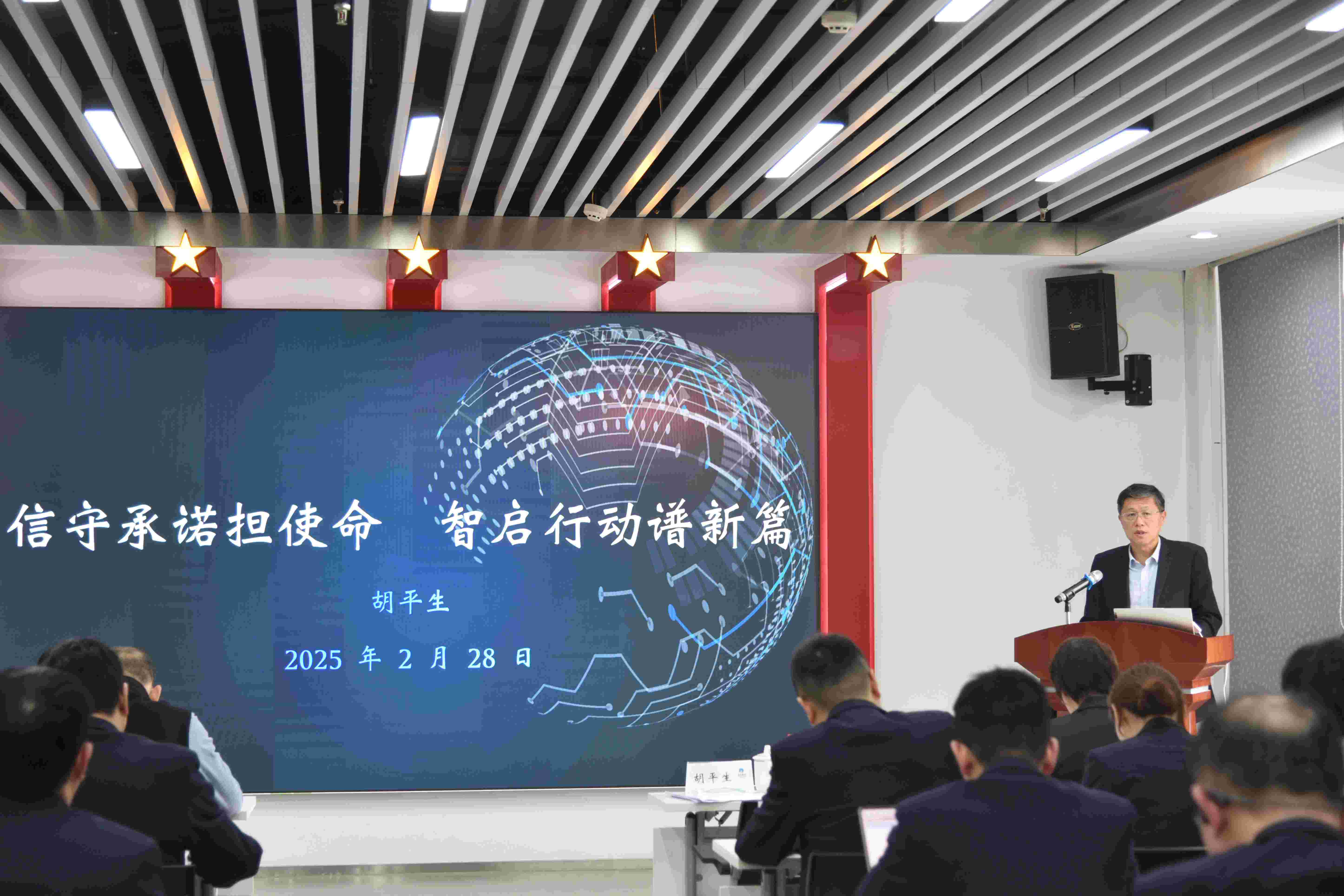 2月28日,為貫徹集團2025年全面從嚴治黨工作會議和年度工作部署會議精神,落實年度經營管理目標、黨風廉政建設、意識形態工作、風險防控和安全生產等責任,動員公司上下全面融入集團戰略新布局、全力踏上數字金融新賽道,金農公司召開2025年度黨建引領經營管理工作會議,并組織開展“信守承諾擔使命 智啟行動譜新篇”專題黨課和“人工智能應用場景”專題培訓。公司支委會、經理層成員及全體員工參加會議、黨課和培訓。