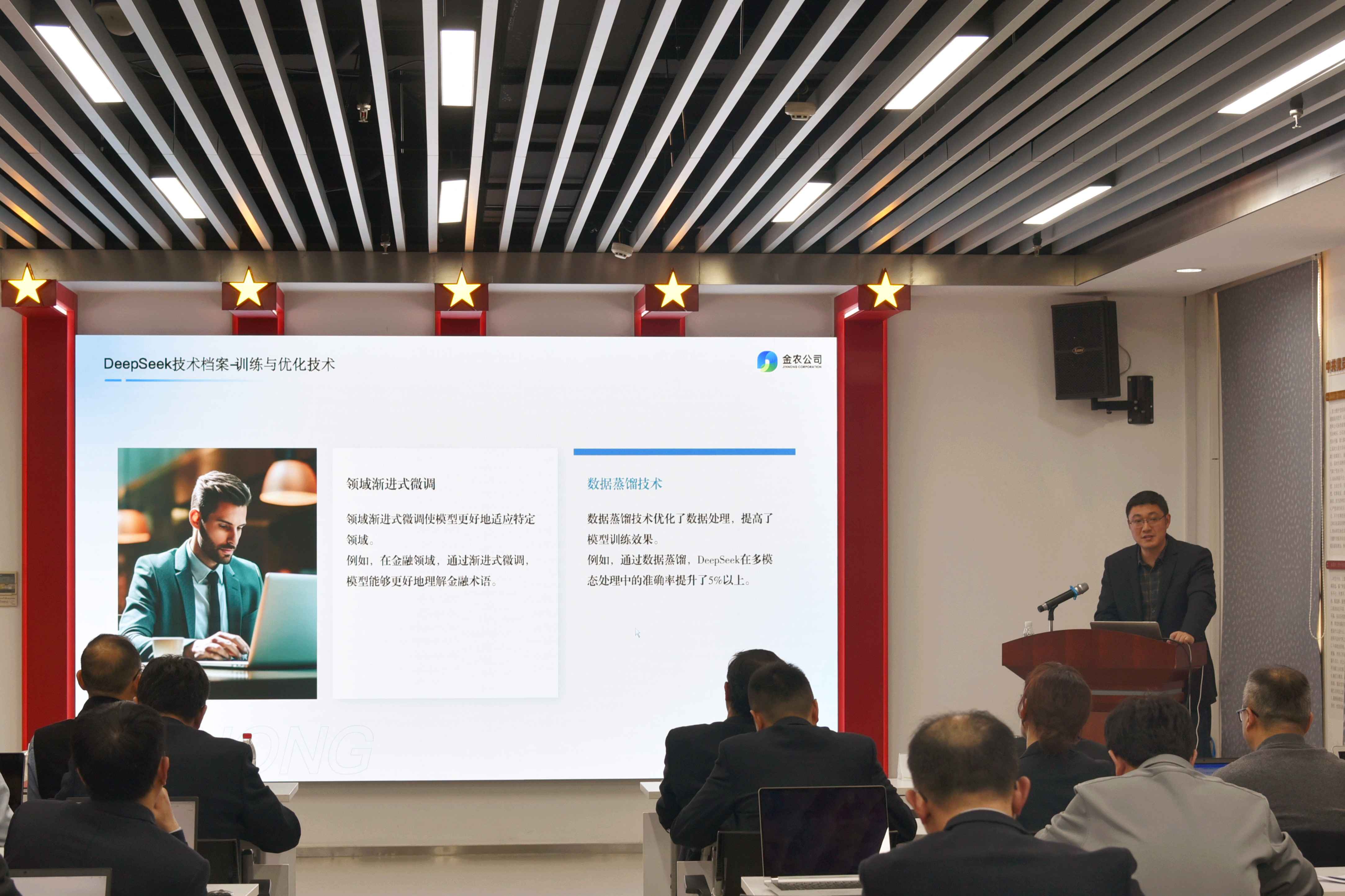 專題培訓圍繞AI技術的發展情況,重點分析了大模型、大數據在金融領域的應用場景,介紹了公司研究、接入、部署、適配、試用DeepSeek等的做法和進展,并就相關的業務、數據和技術問題開展研討。(金農公司 向鯤)