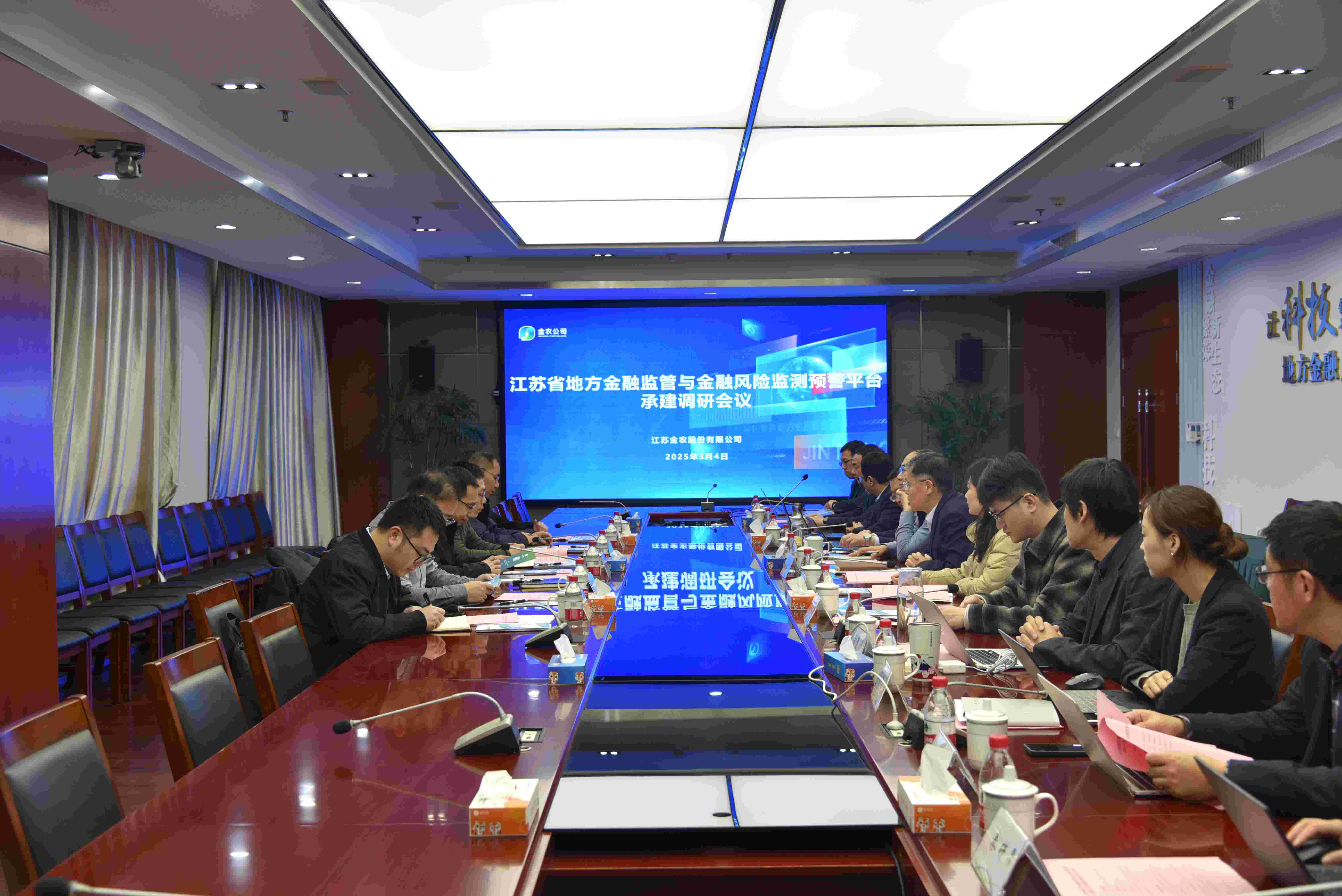 座談會上,金農(nóng)公司相關(guān)負責人簡要介紹了公司股東背景、業(yè)務經(jīng)營等基本情況,以及成立15年來科技賦能江蘇地方金融監(jiān)管與發(fā)展的經(jīng)驗做法;聚焦江蘇省地方金融監(jiān)管與金融風險監(jiān)測預警平臺承建、地方金融非現(xiàn)場監(jiān)管產(chǎn)品研發(fā)以及地方金融風險防控體系構(gòu)建等情況,重點介紹了公司近年來在地方金融科技服務“合平臺”建設方面取得的成果;閩蘇雙方圍繞金融監(jiān)管科技運用、金融風險聯(lián)防聯(lián)控、企業(yè)征信服務升級等工作進行了深入研討,并表達了后續(xù)加強溝通交流的意愿。