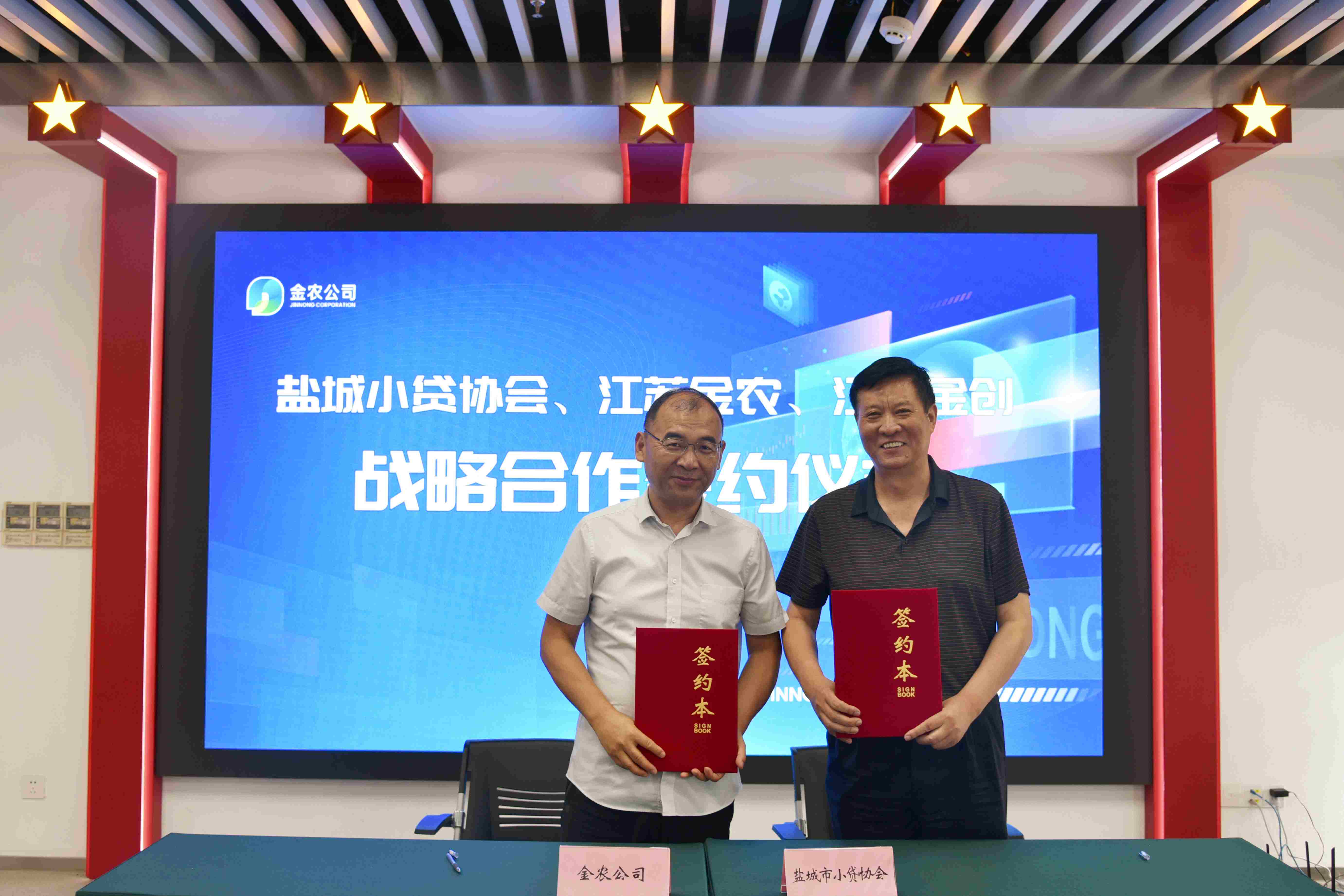 座談會上,金農公司、鹽城小貸協會負責人回顧了雙方合作情況,就未來業務推進、科技應用、信息共享、行業發展、社會責任等方面進行交流研討,并達成共識,簽訂了戰略合作協議。