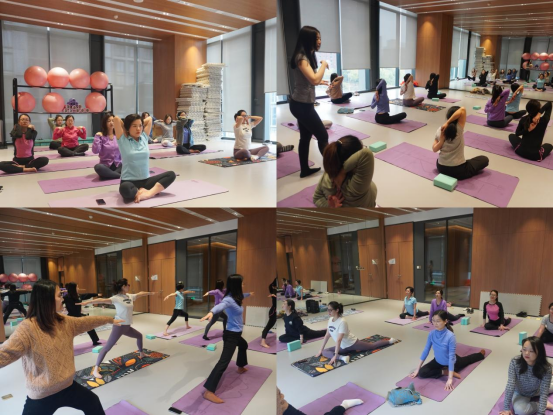 此次活動(dòng)邀請(qǐng)了專(zhuān)業(yè)瑜伽教練為大家授課。活動(dòng)中,老師一邊講解知識(shí),一邊悉心指導(dǎo)動(dòng)作要領(lǐng)。大家換上了舒適、輕便的運(yùn)動(dòng)裝,在悠揚(yáng)清雅的音樂(lè)聲中,閉上雙眼、調(diào)整呼吸、全情投入,跟隨教練的指引盡情舒展身體、放松心情,仿佛沉浸在無(wú)限美好安寧的精神世界中。