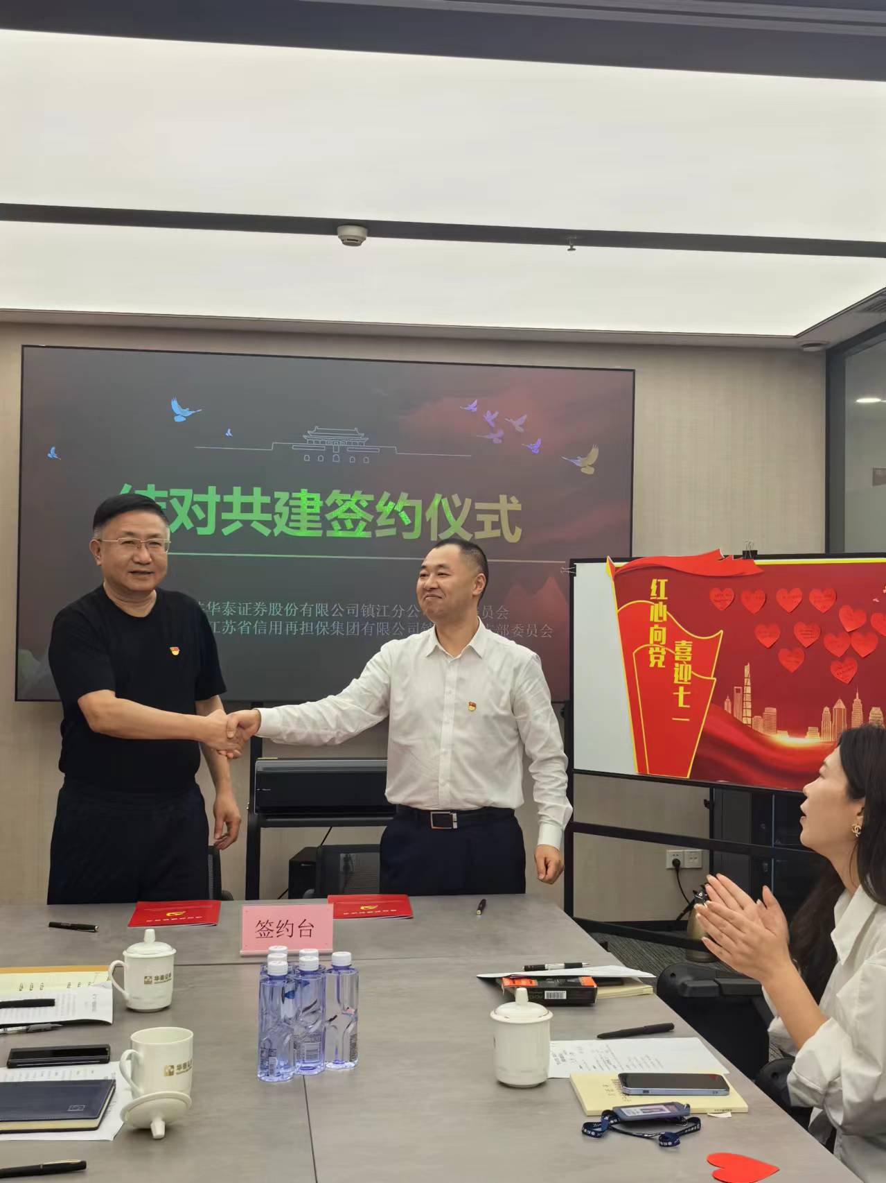 共建活動(dòng)中,雙方單位分別介紹了各自公司的黨建工作情況、業(yè)務(wù)開展情況以及在服務(wù)地方經(jīng)濟(jì)中所取得的成績(jī)。鎮(zhèn)江擔(dān)保分享了如何通過(guò)信用擔(dān)保為中小企業(yè)提供融資支持,助力實(shí)體經(jīng)濟(jì)發(fā)展的經(jīng)驗(yàn);華泰證券鎮(zhèn)江分公司介紹了在資本市場(chǎng)領(lǐng)域的專業(yè)服務(wù)和創(chuàng)新舉措。通過(guò)交流,雙方增進(jìn)了對(duì)彼此的了解,為進(jìn)一步合作奠定了基礎(chǔ)。