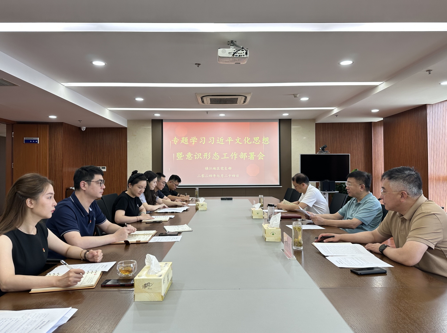 7月24日,鎮江地區黨支部召開專題學習習近平文化思想暨意識形態工作專題會議,深入學習習近平文化思想,全面總結上半年意識形態工作情況,并對下半年工作進行部署。鎮江地區黨支部全體黨員參會。