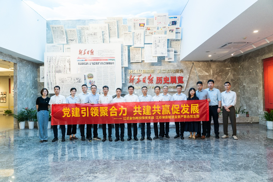 7月8日,為深化黨建引領發展,強化“租擔”合作,江蘇信保租賃及資產聯合黨支部與江蘇金創融資再擔保股份有限公司黨支部開展黨建共建活動。南京市地方金融管理局監管一處有關領導,租賃公司董事長、總經理,江蘇金創再擔保公司董事長薛大松,總經理湯國林出席活動。